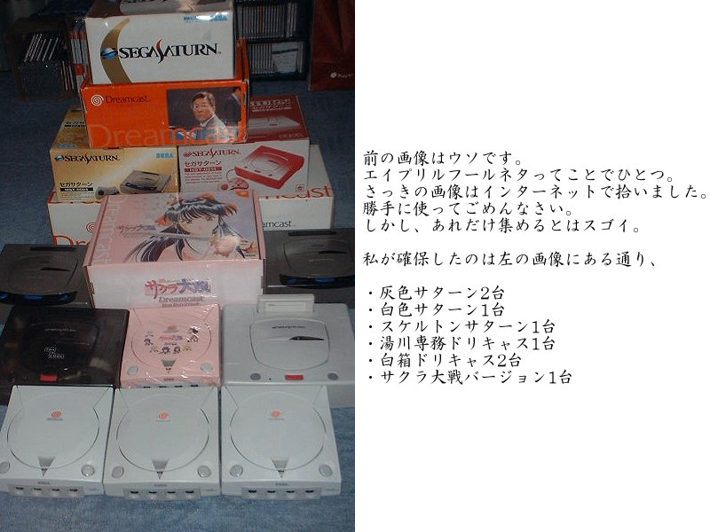 「けいすけさんはPSE法に備えて、どれくらいサターンやドリームキャストを買い込みましたか?」 という質問がありましたのでお答えします。