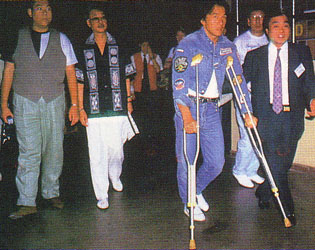 ジャッキーは当時、左足甲を骨折していたとの事で、時期的に『シティーハンター』での事故だと思われる。