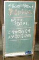門前には受付案内の黒板、そして掲示板の端っこの方にも、申し訳なさげにチラシが貼ってある。