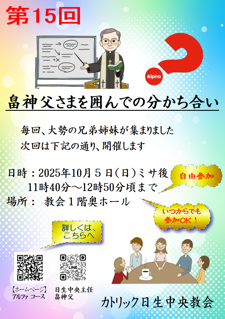 次回の第15回目は、10月5日(日)主日ミサ後を予定しています。