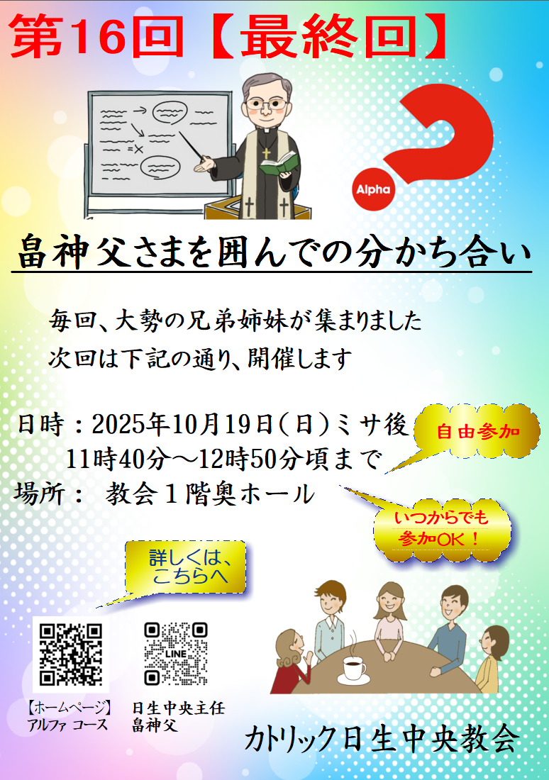 次回の第16回目は、10月19日(日)主日ミサ後を予定しています。