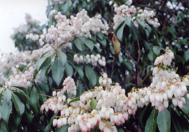 休憩を終え、両脇スズタケの単調な縦走路を足早に古祖母山のほうへ向かう。古祖母山を過ぎて下りに差し掛かると、期待していたアケボノツツジが総出で出迎えてくれる。アケボノツツジは今がまさに見ごろ、満開だ。ムシカリの白い花も点在し、まさに花のトンネル状態。この状態が尾平越しに下るまでのあいだいたるところにあるので飽きることがない。