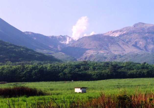 長者原から望む硫黄山の噴煙