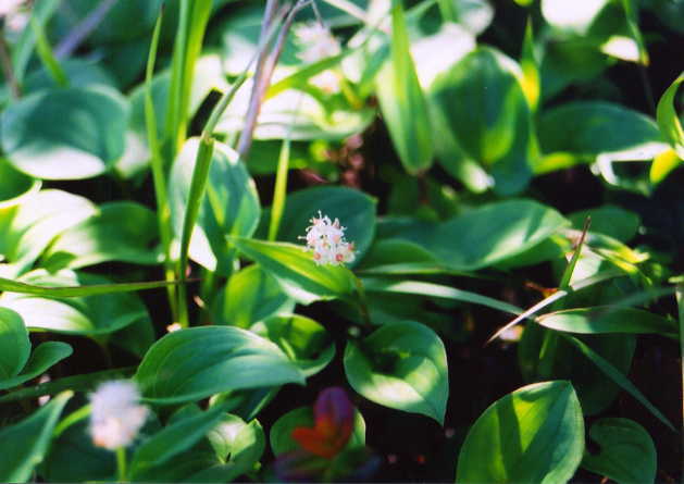 可憐な花を咲かせるマイヅルソウ