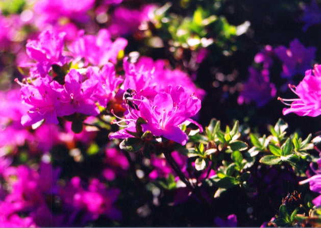 ミヤマキリシマの蜜を吸うミツバチ