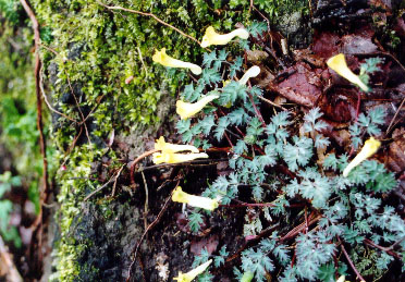 フウロケマンが岩に張り付くように咲いていた |